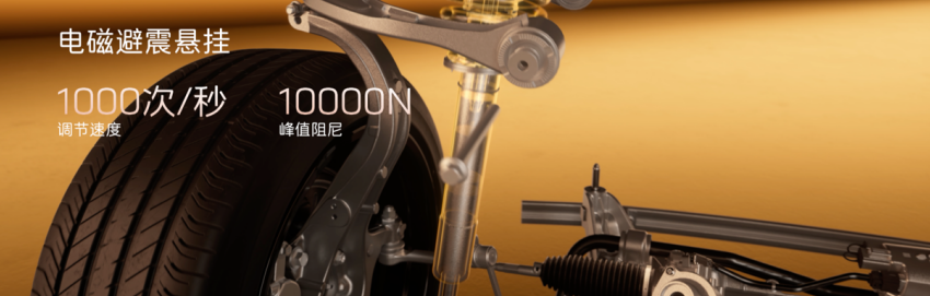 在具体场景中,面对雨后积水、冰雪路面或湿滑地库等低附着路况,系统可通过TVC(智能扭矩矢量控制)系统,在毫秒间对左右车轮的驱动扭矩进行独立、精准的分配,如同为车辆装上“智能防滑差速锁”,主动抑制车轮打滑,确保行驶轨迹稳定。同时,配合响应频率高达每秒1000次的电磁避震,系统能在车辆经过颠簸、飞坡等工况时,以闪电般的速度调整阻尼,牢牢控制住车身姿态,提升操控极限与乘坐舒适性。